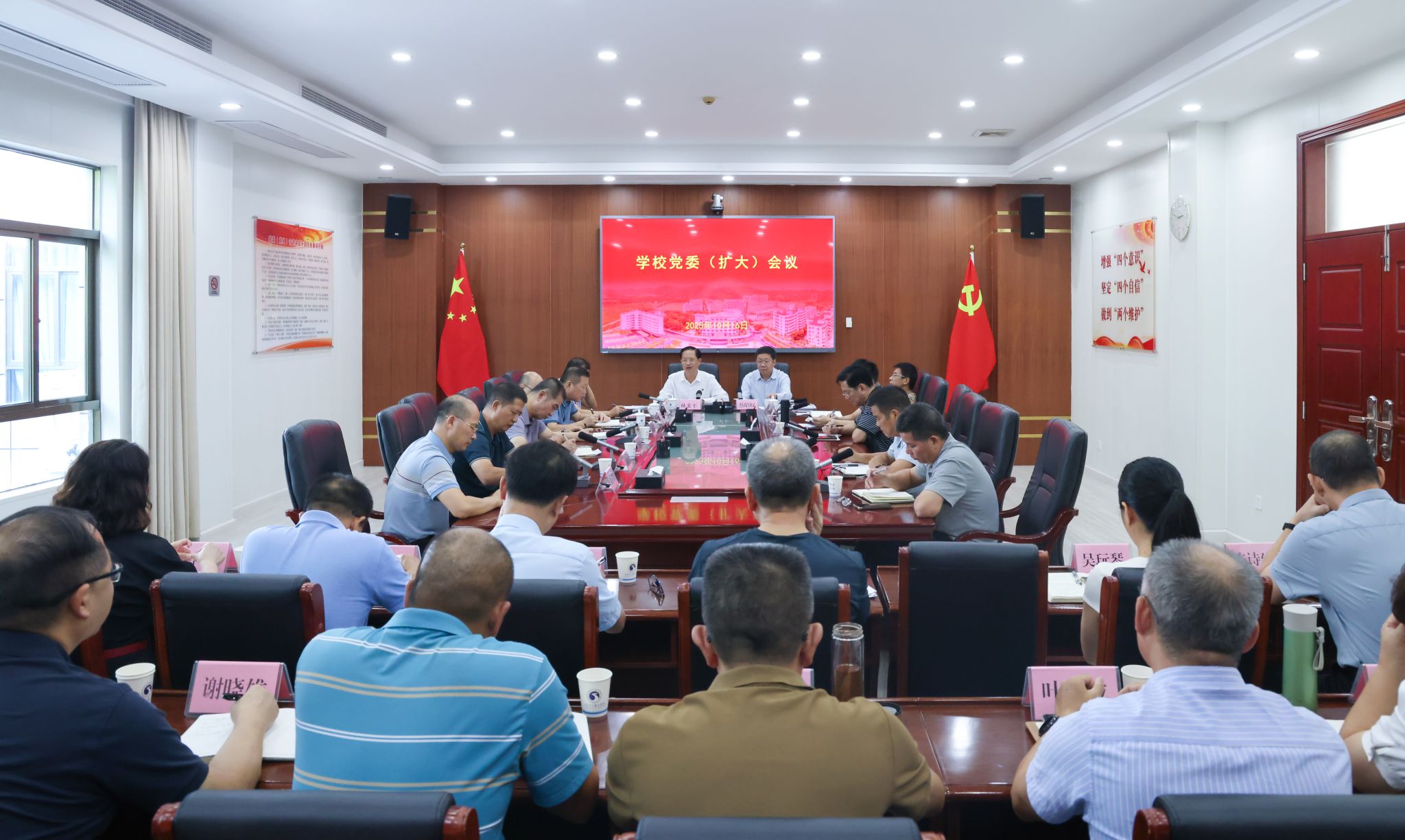 10月30日,學校在科學樓四樓會議室召開黨委(擴大)會議暨理論學習中心組學習會,專題傳達學習貫徹習近平總書記在黨的二十屆四中全會上的重要講話和全會精神,貫徹落實省委常委會(擴大)會議、市委常委會(擴大)會議以及...